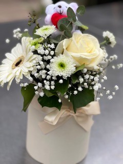 Composition Florale boîte St Valentin : puretée ( boîte en carton )